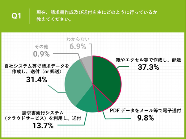 ・請求書の作成及び送付方法、「紙やエクセル等で作成し、郵送」が37.3%
