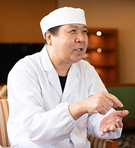 料理長:愛媛の食材を使った美味しい料理を提供するのが、自分の使命ですから。